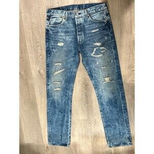 Levi’s 501 jeans Button fly 34 X 36 Ripped and faded - distressed Light blue Regular fit EUC