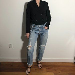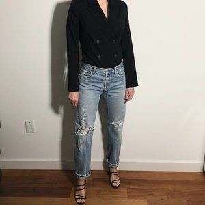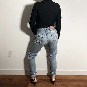Levi’s 501 light wash blue distressed 90s straight leg jeans