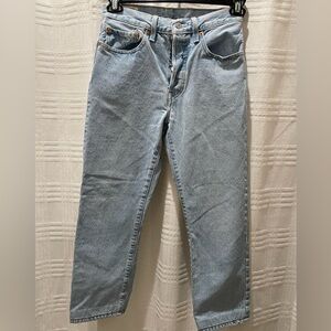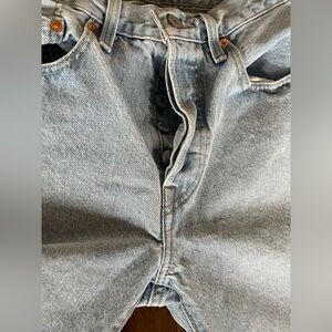 These are in good condition. They do have a small pink mark near the button fly. Please see last picture for close-up of this. These have also been hemmed. They have approximately an inseam of 23 inches. Please message with any questions. Thank you.