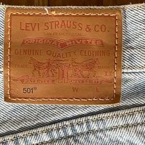 Levi’s 501 premium capital E button fly jeans big E light wash