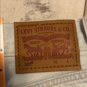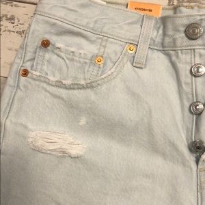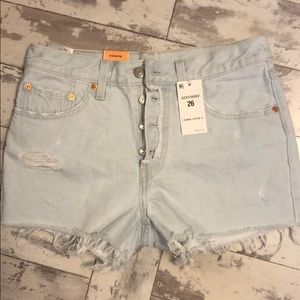 NWT Light wash 501 Levi’s cut off shorts with front distressing and 4 button fly. Size 26.