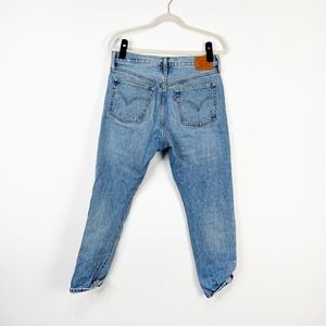 Levis 501 womens distressed skinny button fly blue jeans light wash Size 31 x 28