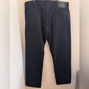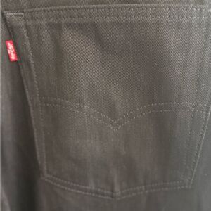 Experience the classic appeal of Levi's black straight leg jeans, crafted from premium denim for a smooth and consistent texture. These full-length jeans offer a sleek silhouette, making them a versatile choice for any occasion. In excellent condition, never worn.
