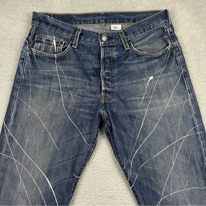 Levis 501XX Jeans Mens 32x32 Blue Denim Straight Leg Button Fly Paint Splatter