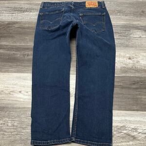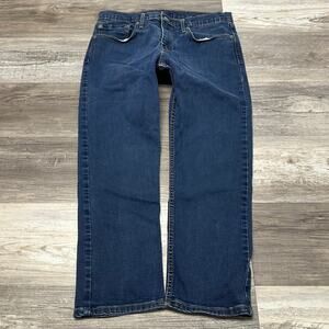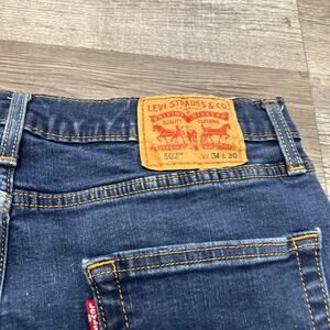 Levis 502 Dark Wash Blue Mens 34x25 Stretch Tapered Leg Denim Jeans Red Tab