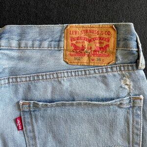 Levi’s 502 Denim Jean Shorts Mens Size 36 Light Wash Distressed Cut Offs