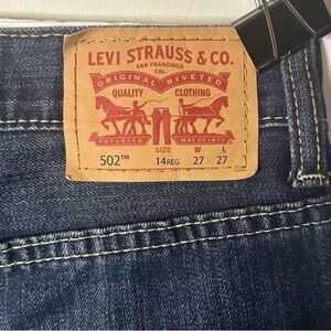 Levis 502 Jeans Regular Straight Leg Girls Sz 14 Jeans Measures 26x27 Dark Blue