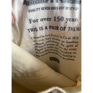 The product is a pair of Levi's 502 Men's Yellow Denim Jeans in size 30x30. These regular tapered fit jeans feature a zipper fly closure, 5-pocket design, and are made of denim fabric. They come in a solid yellow color with studded accents and branding, suitable for the summer, fall, and spring seasons. The jeans are machine washable and easy to care for, offering comfort and style for various occasions. Perfect for those looking for a vibrant and trendy addition to their wardrobe, these Levi's 502 pants are a great choice for fans of festivals, hipster fashion, and retro styles.