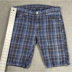 Levis 504 Jean Shorts Mens 36 Blue Black Plaid Regular Fit Classic Casual Y2K