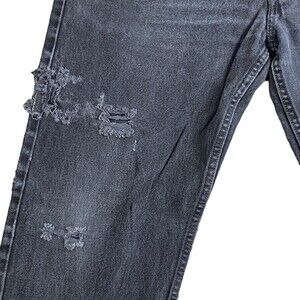 Distressed Levis 505 Black Denim Regular Fit Jeans Pants 38 x 32