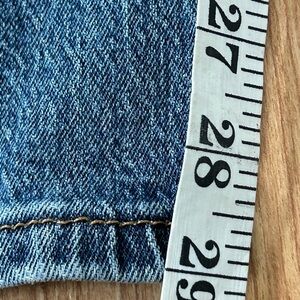 The product is a pair of Levi's 505 Regular Straight Leg Fit Jeans in size 38x29, featuring a light blue denim color. Made of 100% cotton denim, these jeans have a mid-rise and a 5-pocket design. The regular fit and comfortable fabric make them a versatile and classic addition to any man's wardrobe. With a button closure and a timeless style, these Levi's 505 jeans offer a strong and comfortable option for everyday wear.