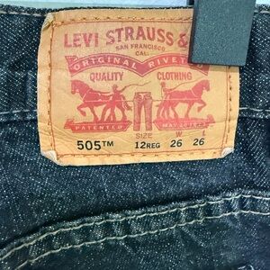 Levi's 505 jeans in a deep blue shade. Timeless design with durable fabric.