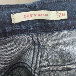 Gently worn womens waist size 28 Levi’s 505 dark wash straight leg jeans. Mid rise, Comes from a smoke free home, bundle with other items to save & minimize shipping cost.