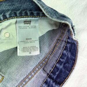 505 shorts in good condition. Minor wear, faint spot on right leg, no big holes or stains. Broken in and comfy, dated 2010.