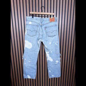 Levis 505 Jeans 36 x 30 Mens Blue Regular Fit Acid Wash Destroyed Denim