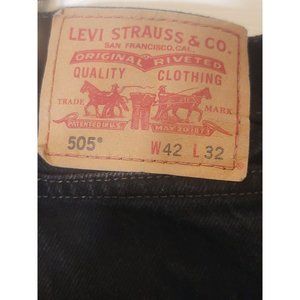 Classic Levi's 505 black denim jeans with a straight-leg cut, size 42X32. These jeans offer a timeless style, comfortable fit, and durable construction for everyday wear.