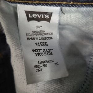 Levi's 505 Jeans Boys Size 14 Reg 27x27 Blue Straight Dark Wash Denim