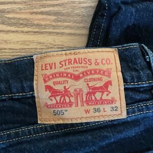 Levis 505 Jeans Mens 36x32 Dark Wash Regular Fit Straight Leg Denim Pants