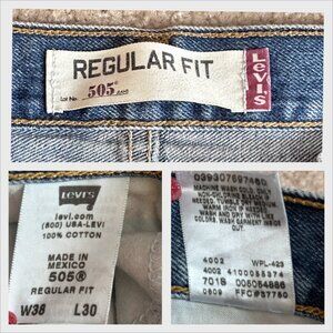 Levi’s 505 Mens Regular Fit Straight Leg Jeans W38 L30 -Measures 38x27-Western