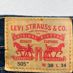 Levi's 505 Men's Regular Fit Stretch Straight Leg Blue Denim Jeans Size 38x34