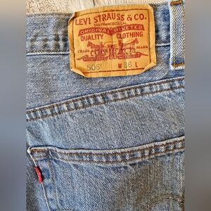 Levi's 505 Men's Size 36 Jean Shorts 10 Inch Blue Denim Dad Style Regular Fit. Please see the actual measurements in photos provided. In Pre-owned condition. Cross posted. I ship out same or next day. Thanks for looking!