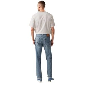 Levi's 505 men's regular fit, straight-leg jeans. The Levi's 505 jeans, created in 1967, feature a classic straight leg, sitting at the waist with room in the thigh for a comfortable fit. They have a zipper fly and a five-pocket design. The 505 is similar to the 501 but has a more relaxed fit and a straight leg.
