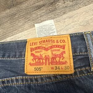 Levis 505 Mid Wash Faded Blue Men 34x30 Regular Fit Straight Denim Jeans Red Tab
