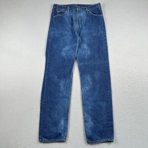 Levis 505 Orange Tab Mid Rise Dark Wash Distressed Denim Blue Jeans Mens 36x32