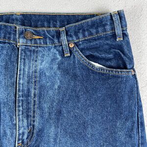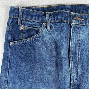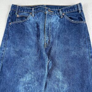 Levis 505 Orange Tab Mid Rise Dark Wash Distressed Denim Blue Jeans Mens 36x32.