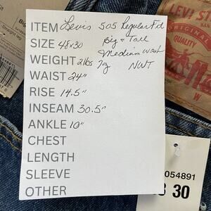 Levi’s 505 REGULAR FIT Jeans Big & Tall 48X30 Blue Medium Wash 100% Cotton NEW