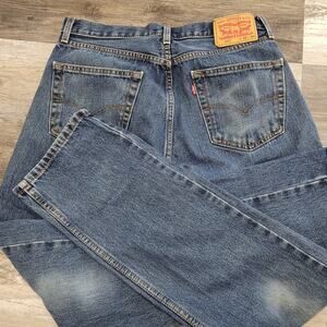 Levis 505 Red Tab Faded Blue Mens 36x31 Regular Fit Straight Leg Denim Jeans
