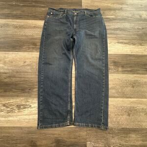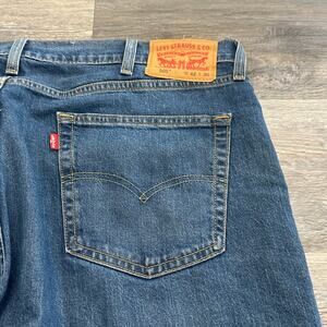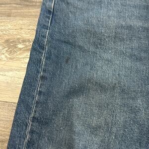 Levis 505 Red Tab Faded Mid Wash Blue Mens 42x29 Straight Regular Fit Denim Jeans Note the item has stains, pockets zip fly button medium wash casual streetwear, worn in.
