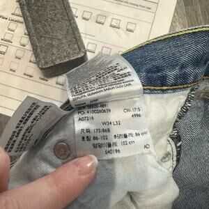 Levis 505 Red Tab Mid Wash Blue Mens 34x32 Regular Fit Straight Leg Denim Jeans