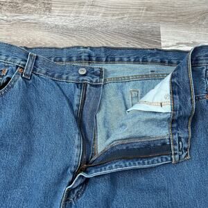 Style Tags: Levi’s 505 jeans, men’s straight leg denim, W42 L32 Levi’s, classic zip fly jeans, plus size jeans, dad jeans, workwear denim, vintage Levi’s fit