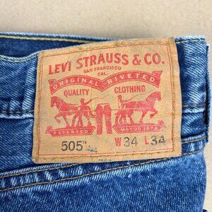 Levi's 505 Regular Fit Straight Leg Denim Jeans Mens 34x34 Blue Zip Fly Red Tab