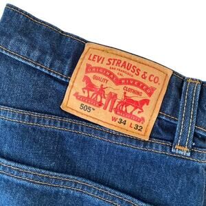 Levis 505 Regular Straight Fit Dark Wash Jeans - 34x32