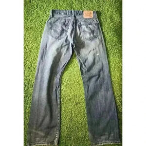 A great pair of Levi's jeans to add to your wardrobe. These jeans feature a solid pattern, a zip closure, and are made of a comfortable cotton blend denim that has a dark wash. The jeans are perfect for men who care about style and comfort and are a great addition to any collection. The jeans are available in size 30 and are blue in color. They have a classic 5-pocket design and are perfect for everyday wear.