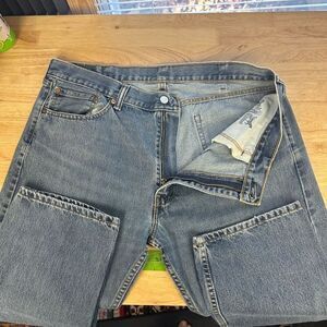 Levis 505 Regular Straight Men's 38x32 Medium Wash Denim Blue Jeans Zip