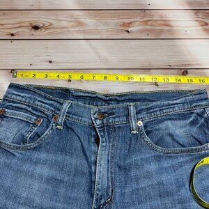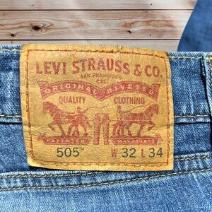 Great condition jeans from Levi's! Medium wash with whiskering from factory. 5 pocket, zip fly. Straight cut. Waist 32 inches, length 34 inches. No rips, stains, or tears. No cosmetic damage.