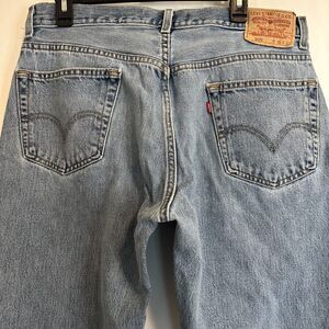 Levis 505 Straight Leg 36x32 Blue Jeans Mild Distress Denim 90s VINTAGE