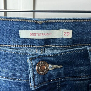 Levi’s 505 Straight Leg Stretch Floral Embroidered Jeans Size 29 Medium Wash