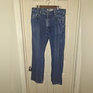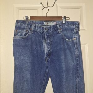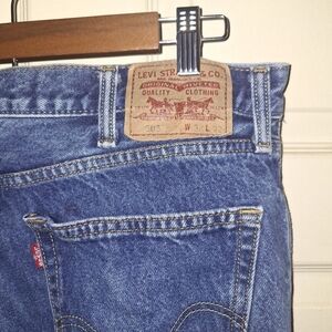 Levis 505 jeans size 38X32 side to side measurements is 19" rise is 12" inseam is 32.5 " top of waist to bottom hem is 43" if you have any questions please message me bundle more items for bigger deals Bin-99