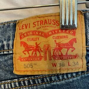 Levi’s 505 jeans size 50X34 men’s straight leg preowned fair belt loop repaired