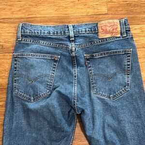 Classic Levi's 505 relaxed fit jeans in a timeless medium blue wash. These jeans offer a roomy fit through the seat and thigh with a straight leg -Perfect for all-day comfort and casual style. 100% cotton, Iconic style that pairs well with tees, flannels, or jackets. In great condition with some wear in the front.