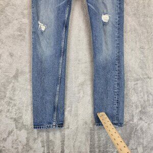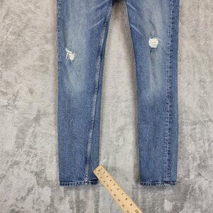 Levis 510 Jeans Mens 34 Blue Distressed Stretch Denim Ripped Knees Skinny Fit