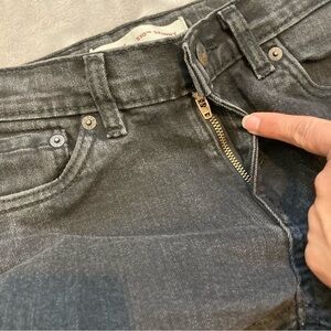 Levi's 510 Skinny Black Zip Up Jeans Adjustable Waist Size 12 Regular 26 x 26. Color is not solid black, more like a charcoal.