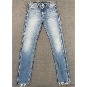 Levis 510 Skinny Jeans Men 30x32 Light Wash Distressed Raw Hem Side Seam Y2K