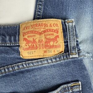 Levi's 511 Denim Blue Jeans 34x32 Distressed Blue Jeans