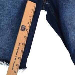 Pre-owned with intentional frayed hem for a vintage-inspired look. No stains, rips, or holes beyond the cutoff detail.