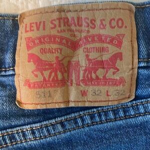 Levi's 511 Jeans Mens 32 x 32 Blue Slim Straight Leg Medium Wash Denim Pants EUC with small spot shown